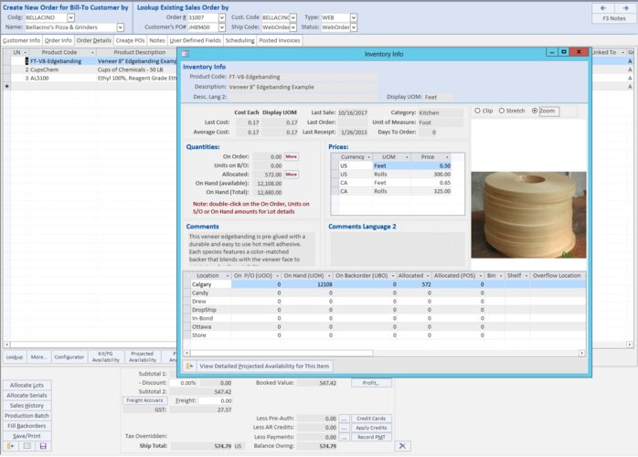 The core application of the platform is the inventory management functions, including order entry, purchasing, and procurement.
